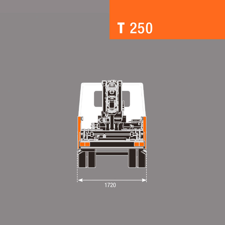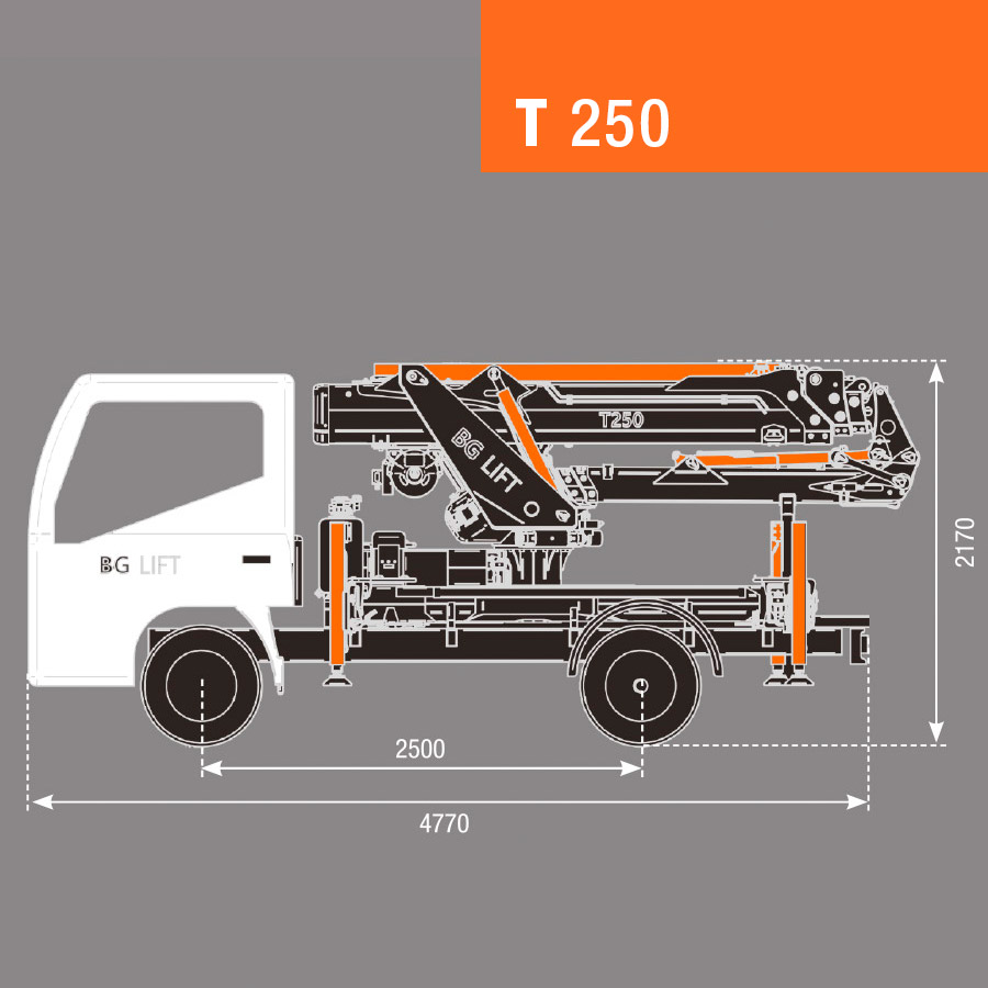 Șasiul special și configurația stabilizatoarelor „V” permit operarea și în fața cabinei.