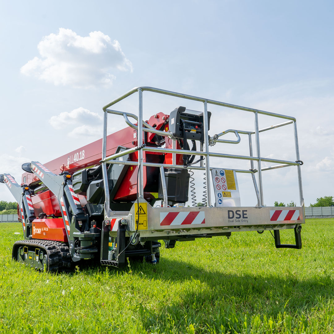• Caracteristica cheie a acestei noi platforme aeriene de 40 m este o înălțime maximă ridicată/extensiune față de raportul dimensiune/greutate a mașinii. Este singura platformă aeriană articulată pe șenile din categoria 40 m cu această caracteristică.