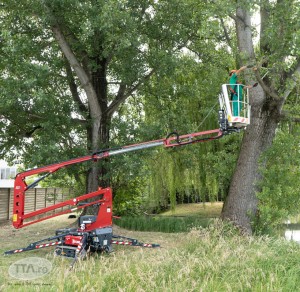 Nacela pe șenile pentru lucru la inaltime (nacela), montata pe senile, cu brat dublu articulat + telescopic + jib, benzina + 220 V, model Hinowa – GoldLift 14.70