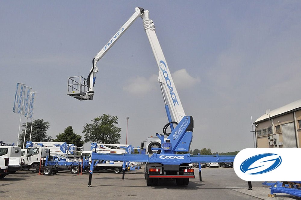 Dimensiunile cosului din aluminiu sunt 2300 x 900 x h 1100 mm, extinzand hidraulic la 3300 mm pentru a mari spatiul de operare. Rotirea coșului este de 360° (180° stânga + 180° dreapta) permițând o mare versatilitate de poziționare pentru lucru.