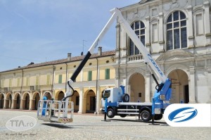 Dimensiunile cosului de aluminiu sunt 2300 x 900 x h 1100 mm, extinzand hidraulic la 3600 mm pentru a mari spatiul de operare. Rotirea coșului este de 360° (180° stânga + 180 dreapta) permițând o mare versatilitate de poziționare pentru lucru.