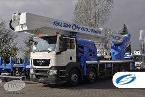Atinge o înălțime de lucru de 75 m și o rază orizontală de 40 m, în plus are o capacitate mare de încărcare de 600 kg (6 operatori + material)
