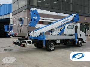 E’ in grado di raggiungere un’altezza di lavoro massimo di 19,60 m e uno sbraccio laterale di 9 m con una capacità di carico di 230 kg o 300 kg come optional. (2 operatori + materiale).